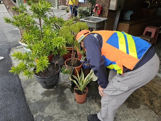 李區長佳隆感謝各環保志義工隊一直以來為里內社區環境的付出與努力,也由自身的付出影響他人,讓大家都能主動為地方環境來盡一份心力。農曆春節將近,今年除夕前一週(114年1月18日至24日)為本市環境清潔週,家家戶戶最近必定也都開始忙著大掃除,趁掃除期間將不必要的容器清出,除了可拿出來做容器兌換又可讓住家的居住環境煥然一新,近日天冷,也請大家請大家注意務必做好保暖工作,秋冬時節空氣品質易不良,也呼籲大家外出時可適時帶上口罩,防塵防病毒又可保暖!也再次宣導大家持續 落實「巡 、倒 、清 、刷 」, 主動巡查自家戶內外積水容器,天溝、屋後溝及菜園等更要注意,避免積水孳生孑孓病媒蚊,請大家一起做好登革熱防治工作 ,打造無蚊家園!外出時穿著淺色長袖衣褲,並使用防蚊液保護自身安全。現在流感等呼吸道疾病仍盛行,提醒大家勤洗手、戴口罩、維持良好個人衛生習慣