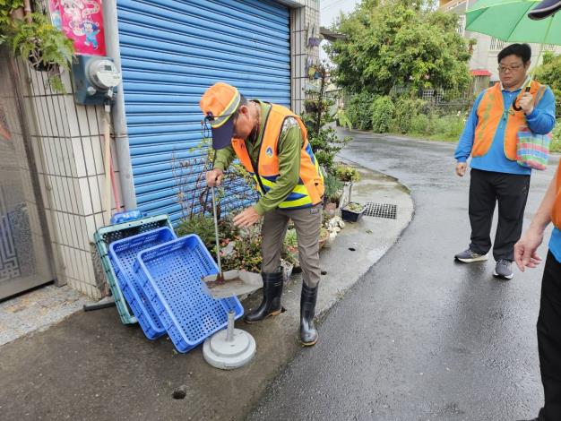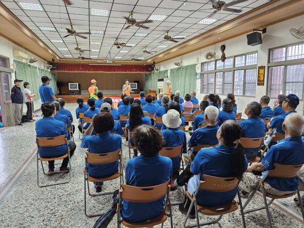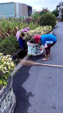今日(5/10)上午7點00分本所於大埕里舉辦5月份環境清潔日暨登革熱區里評比,大埕里環保義工隊 一早便在大埕里長陳清文的帶領下進行里內環境打掃,當日偕同衛生所及清潔隊一同進行家戶積水容器巡檢,清除登革熱病媒蚊孳生源,巡檢中對民眾進行登革熱防治衛教,請民眾主動維護居家環境衛生,由家戶確實做好登革熱防治工作,提昇環境生活品質。