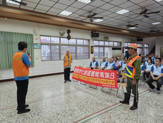 劉主任秘書志琮感謝各環保義工隊一早便到里內進行環境清潔打掃,也提醒大家4月1日起若查獲登革熱孳生源者,一律依傳染病防治法開罰3,000元到1萬5,000元,無改善期,請大家務必做好登革熱防治工作!請大家持續 落實「巡 、倒 、清 、刷 」, 主動巡查自家戶內外積水容器,天溝、屋後溝及菜園等更要注意,避免積水孳生孑孓病媒蚊,請大家一起做好登革熱防治工作 ,打造無蚊家園!外出時穿著淺色長袖衣褲,並使用防蚊液保護自身安全。