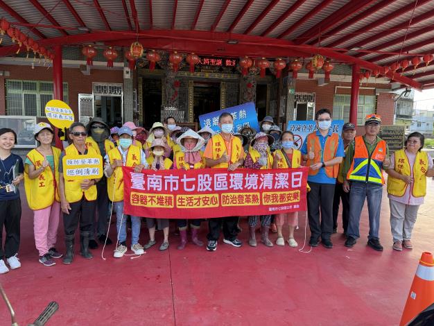 今日(6/15)上午7點30分本所於義合里舉辦6月份環境清潔日暨登革熱區里評比,義合里環保義工隊一早便在義合里長黃文乾的帶領下進行里內環境打掃,當日偕同衛生所及清潔隊 一同進行家戶積水容器巡檢,清除登革熱病媒蚊孳生源,巡檢中對民眾進行登革熱防治衛教,請民眾主動維護居家環境衛生,由家戶確實做好登革熱防治工作,提昇環境生活品質。