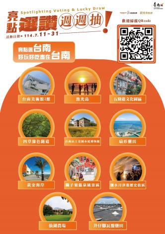 觀光旅遊局提報本市景點參加交通部觀光署「觀光亮點獎」 選拔活動,本市共有11處景區參加選拔,敬請踴躍投票予本市景點,活動方式如下: