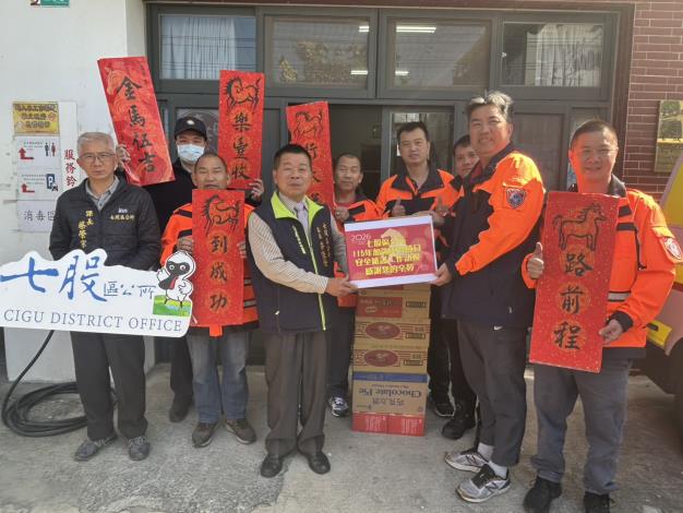 七股區李區長佳隆表示,七股區目前計有大埕、龍山、竹橋及中寮等4隊守望相助巡守隊,平時即在地方社區治安中發揮重要的功能,不僅協助警方打擊犯罪,在防搶、防盜方面也發揮重要的影響力及成效。感恩警消弟兄及清潔隊員春節期間堅守崗位,辛勞付出。
