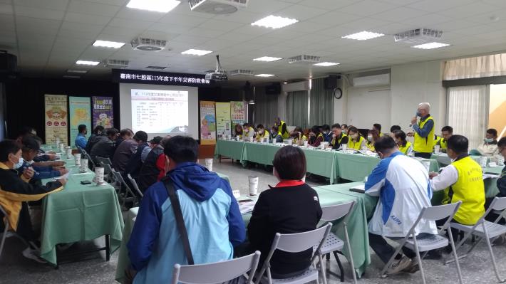 活動內容:「臺南市七股區113年度下半年災害防救會報」於11月28日上午10時於區公所3樓會議室召開,由李區長佳隆親自主持,邀集各里長、防災編組單位、防災士、市政府災害防救辦公室及相關局處與會。會議中由各防災編組單位報告防災應變工作及宣導事項,並針對113年度下半年里長建議提案請市府相關局處說明與討論,期以解決各里防汛建設需求,提升防汛防災能量。