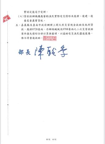三、所需文件:1.申請人印章(私章)。2.養殖漁業登記證影本(雙面)(影本)。3.水利建造物許可書(或水權證明) (影本)。4.本年度5月放養量申報書影本。5.申請人身分證影本。6.存摺影本。