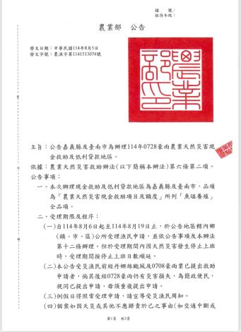 二、受理申請期間:自114年8月6日至8月19日止,於上班時間(上午8點至12點;下午1點至5點)至本所農業及建設課受理。